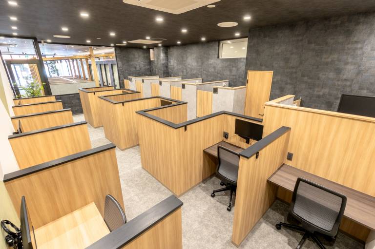 高速Wi-Fi、フリードリンク、各席電源、無料プリンターなど設備も充実!食事ができるブースもあるので、お弁当などを持ち込んで一日中過ごせます。