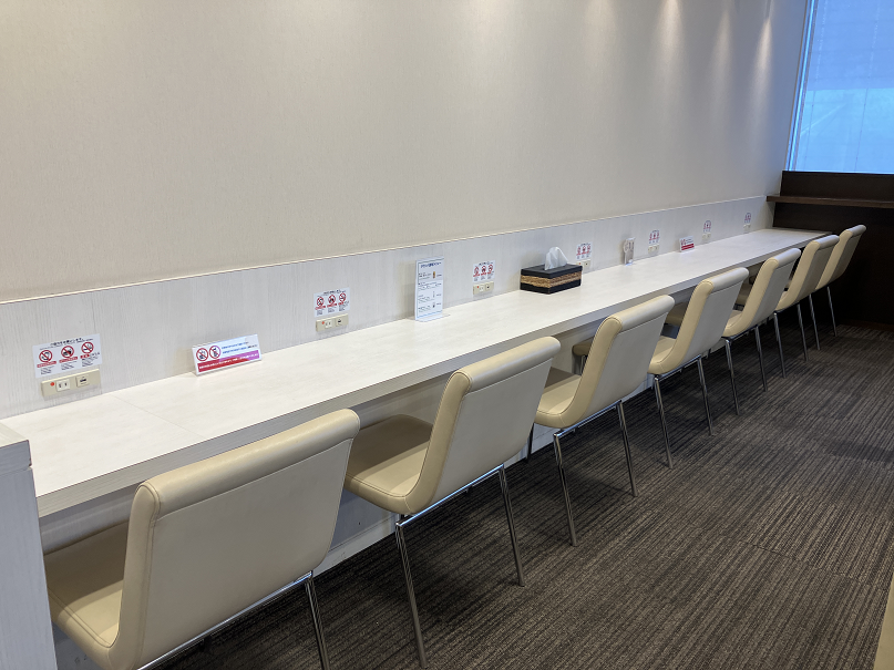 飛行機でのご出発前・到着後のひとときをゆっくり快適にお過ごしいただけるスペースとなっております。ビジネスの方から、個人・ご家族旅行など幅広くご利用でき、室内にはUSBソケット・コンセント席エリアもあり、充電に便利です。