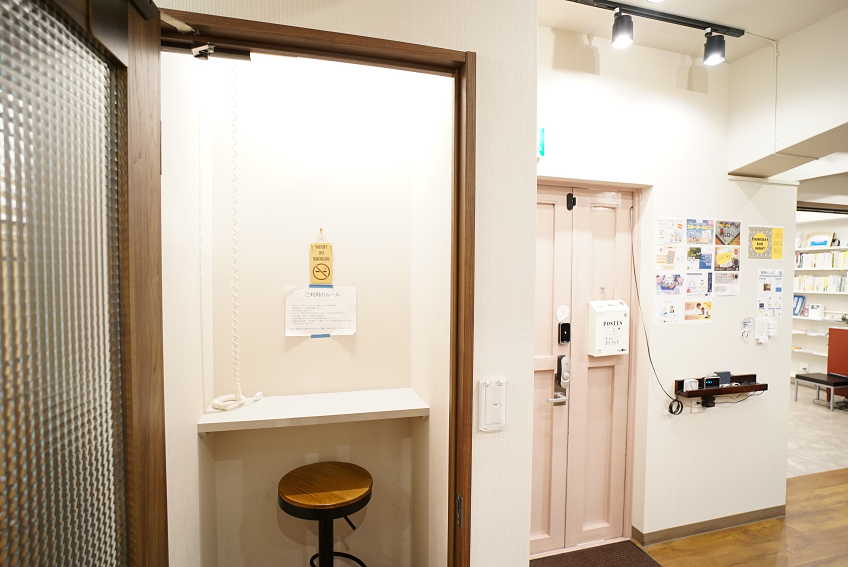 電話やテレビ会議に使える小部屋など。