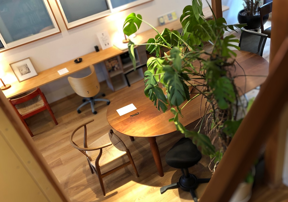 コワーキングスペースは1階に位置し、通りからの視認性も高く明るく開放的な雰囲気です。