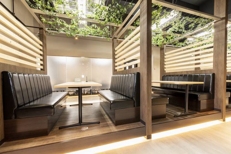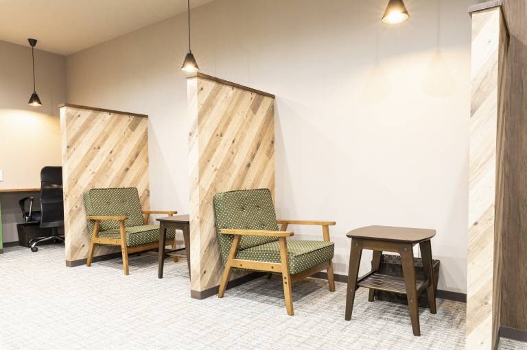 ご利用用途に応じて使い分けが出来るよう5つのブースをご用意。飲食可能なカフェスペース、外部の方と打ち合わせ可能なレセプションブース(無料)などバリエーションに富んだ区分けが魅力のコワーキングスペースです。また8名用の会議室も完備しており打ち合わせやイベントにもご利用いただけます。(会議室別途有料・要予約)