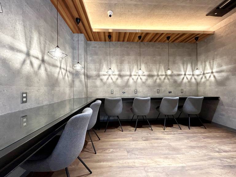 フリーWi-Fi、フリードリンク、電源スポット(USB-C)、セルフロッカーも完備しています。
