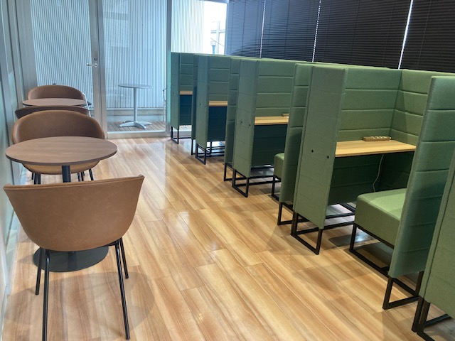 スポーツクラブ&サウナ スパ ルネサンス国立では、自席での電話・オンライン会議・飲食が可能です。