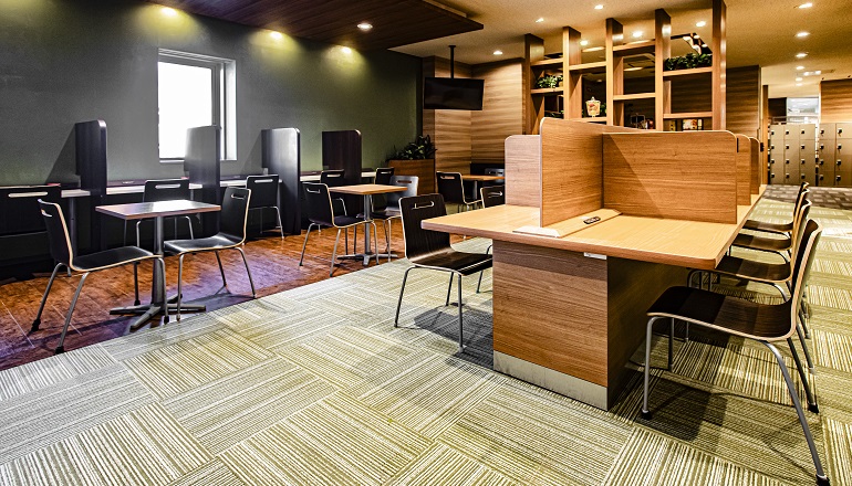 スポーツクラブ&サウナ スパ ルネサンス 亀戸では、自席での電話・オンライン会議・飲食が可能です。