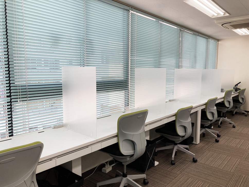 衝立のある個室型ブースや、電話やウェブ会議などに便利なフォンブースを新たに設置しました。
