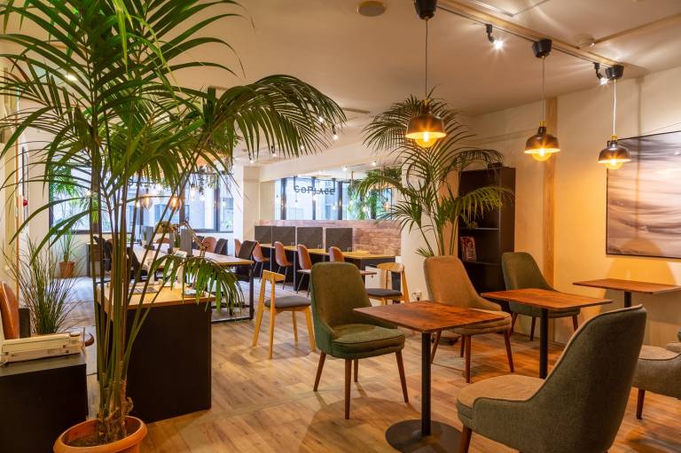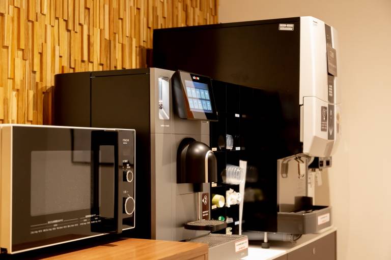 系列店のコーヒーロースターの豆やオーガニックハーブティなどフリードリンクにもこだわっています。小腹が空いた時にはスナックのご用意もあります。