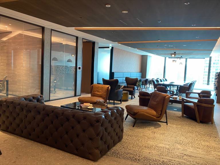 2021年3月竣工、地上39階建て、日本屈指のハイグレードビル17階にあります。浜松町駅と直結しており、雨に濡れることなく移動することができます。オフィス内のインテリアにもこだわっており、ラウンジなど共用エリアにはイタリア製の家具を配し、バリスタがコーヒーを淹れてくれるバリスタバーもあります。個室の防音も重要視しており、プライベートオフィスは全て壁の厚さを12cm以上で設計、一般的なレンタルオフィスの2倍のグラスウール素材を使用しています。特に音漏れの気になる小型個室は、サウンドマスキングの設備を搭載し、徹底的にストレスフリーなオフィス空間を追求しています。エグゼクティブセンターの内装は、シェアオフィス業界の最高級品質です。