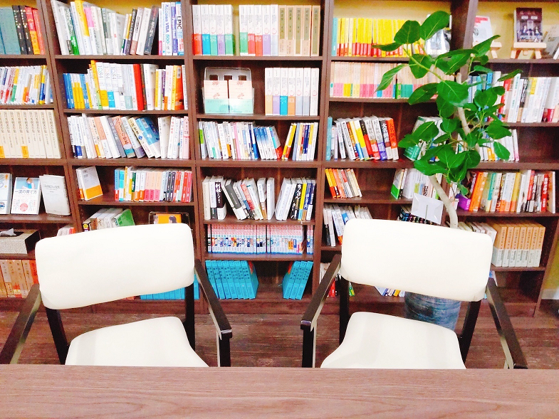 店内には自由に手に取って読める本棚があり、長時間の滞在や途中外出も可能です。